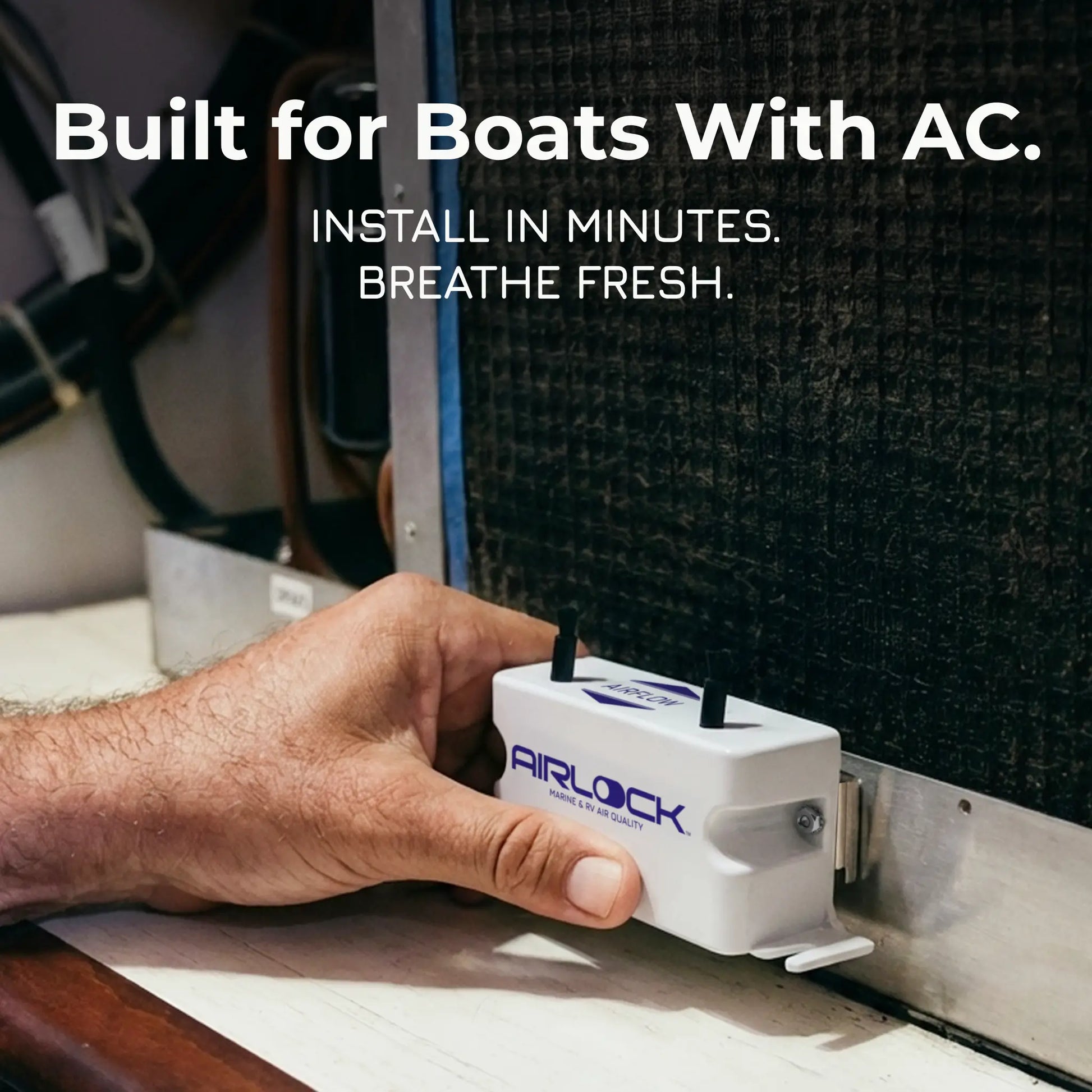 Installed straight into your AC, AIRLOCK One scrubs every breath clean before it hits your cabin. Odors, mold spores, bacteria — gone at the source. The first solution to "boat smell". The last you'll ever need.