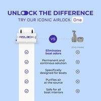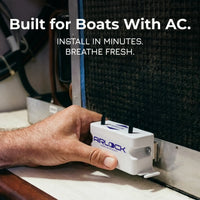 AIRLOCK One works through your boat's AC system. No AC? AIRLOCK Voyage was built for you — plug-and-play, no installation, made for tight spaces like bathrooms, galleys, and bunks.