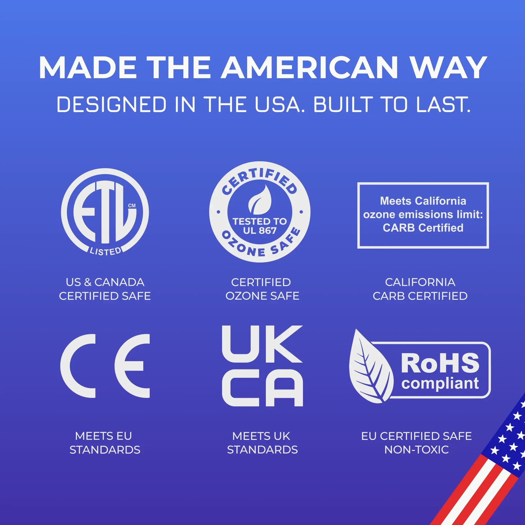 CONFORMS TO UL STD 867 | CERTIFIED TO CSA STD C22.2 No. 187 | Meets California ozone emissions limit: CARB Certified