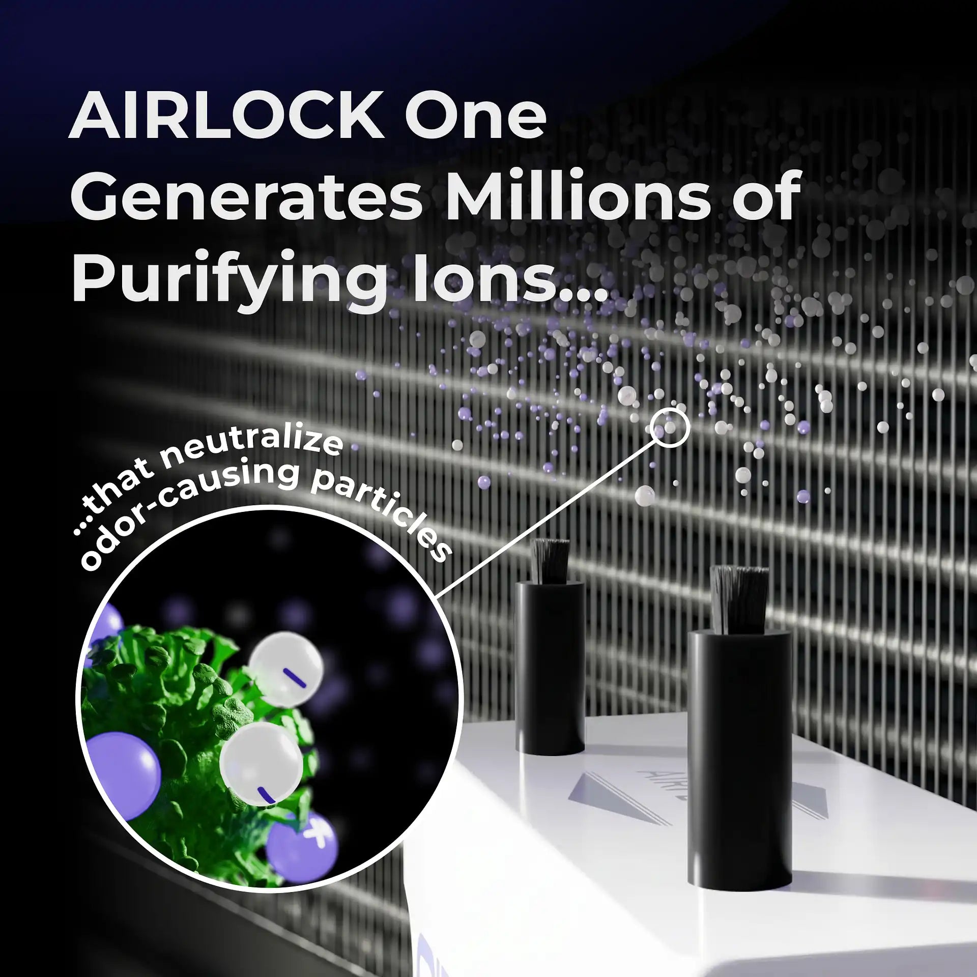 AIRLOCK One’s Bipolar Ionization technology generates a continuous flow of charged ions that actively seek out and neutralize airborne contaminants at the source. As they complete their job, these ions naturally revert back into water vapor—allowing the purification process to repeat again and again.