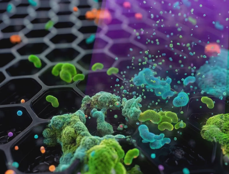 - Photocatalysis helps break down odor molecules and VOCs at the molecular level