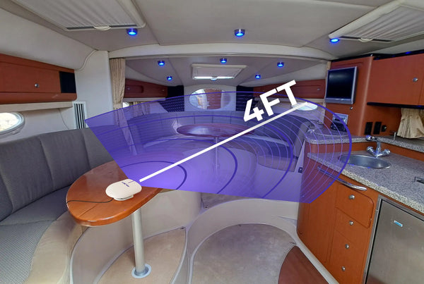 That's why we built Voyage: a compact, plug-and-play air purifier designed for boats without AC, with an odor removal range up to 4 ft.