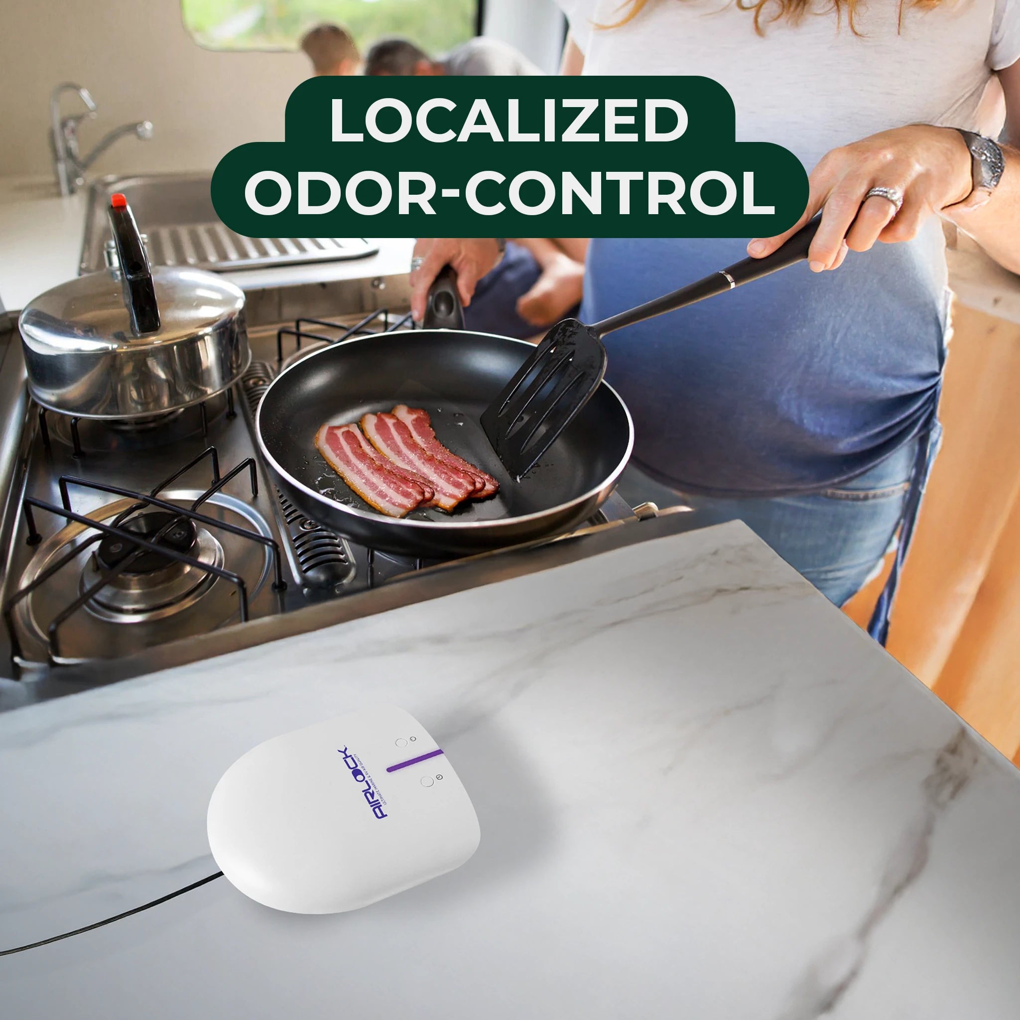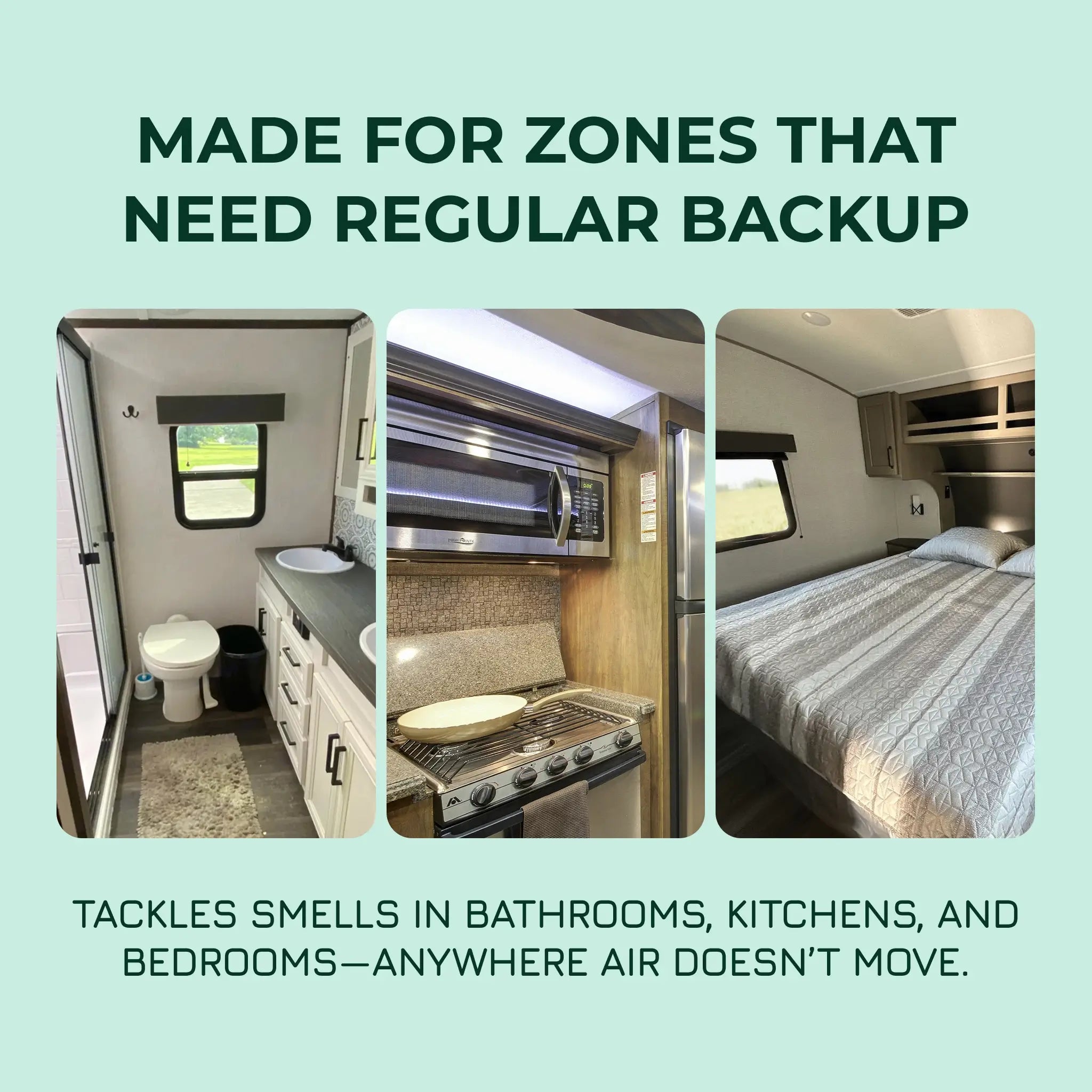 That’s why we built a compact, plug-and-play air purifier to add a layer of defense to the smaller zones in your RV that demand daily control, like bathrooms and kitchens where air doesn’t move. Powered by portable technology, it knocks out odors before they take hold.