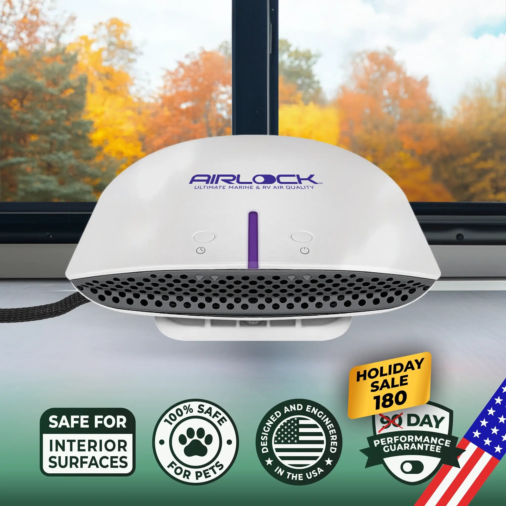 While AIRLOCK One works along your AC system for full, powerful coverage, AIRLOCK Voyage adds real-time, localized odor control for tight spaces or off-season use.