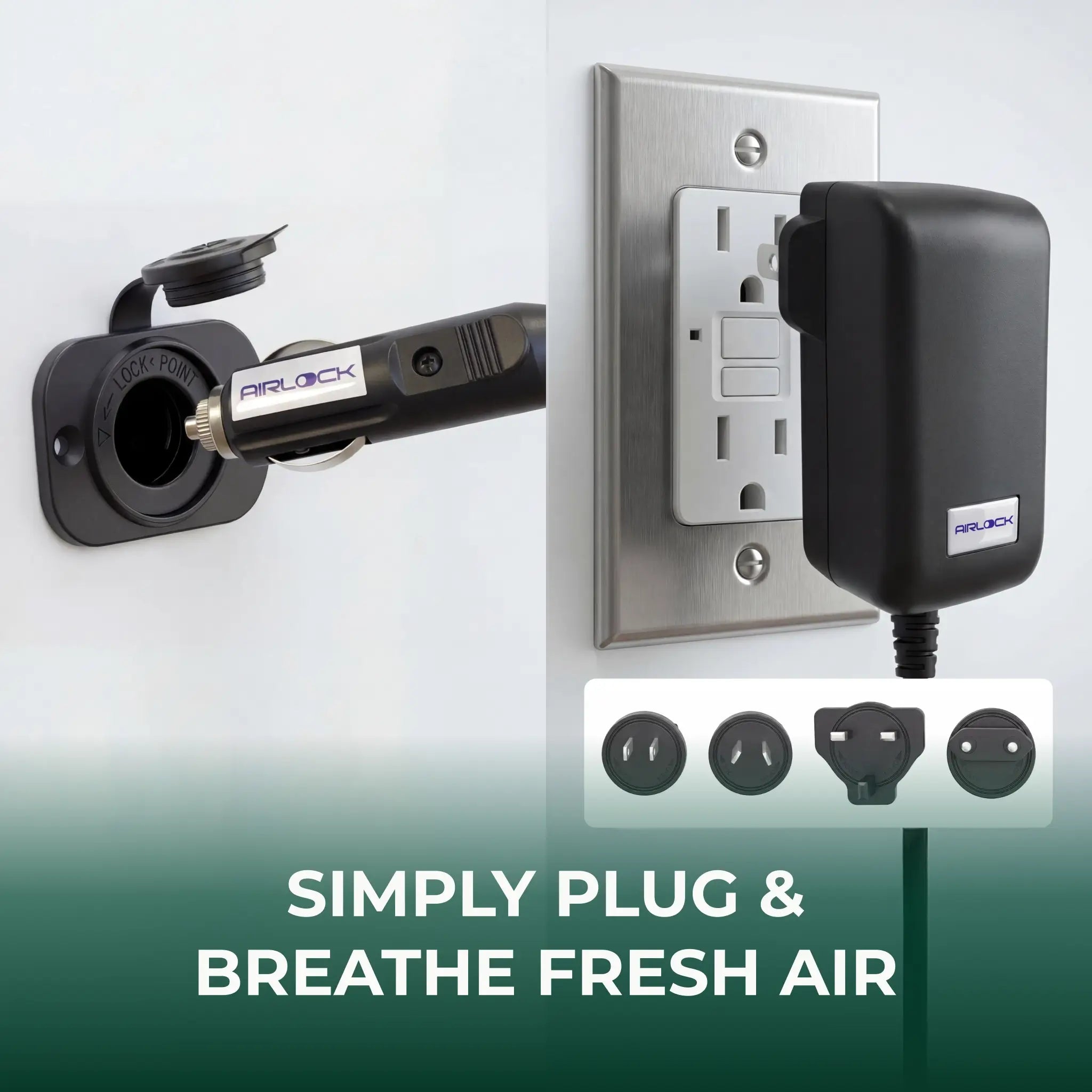AIRLOCK Voyage pulls in ambient air from your RV interior using a built-in fan. This ensures that even stale, unmoving air in tight spaces gets drawn into the purification cycle — no HVAC required.